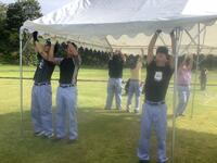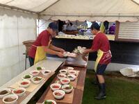 9月7日(日)雨が降りしきる中、第39回あいべつきのこの里フェスティバルに協力員として参加しました。お肉を盛り付けて提供する焼き肉係、あいちゃんタワーの補助をするステージ係など5つの係に分かれ、それぞれの係の仕事を頑張りました。前日はテント張りや机や椅子の搬入など会場作りを行い、実行委員の方から大きな賞賛をいただき充実した2日間となりました。