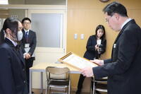 プの方が来校し、令和4年度から始まった「愛別駅」清掃活動の取り組みに対して感謝状をいただきました!