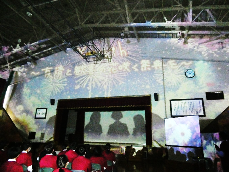 当日は、『花咲く祭典』をコンセプトに考えたプロジェクションマッピングで幕を開け、各学年の個性を活かしたステージ発表が行われました。その中でも3学年の『ソーラン節』生演奏で会場がひとつになり、最高のステージ発表となりました。また、作業学習で製作した木工製品や乾燥製品、『愛ふくふく』や『ダ・マルシェ』、『JA上川中央』のきのこのバザー販売、『ニコイチキッチン』(キッチンカー)など、愛別町の方々にご協力いただき販売会を実施することができました。閉祭式は、放送委員会のクロージング動画や執行部が企画した花吹雪のプロジェクションマッピングで、ご来場いただいたみなさんと一緒に盛り上がりました。