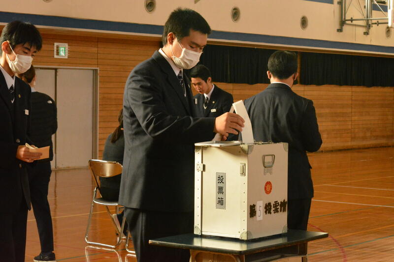 2年生から2名、1年生から5名の生徒が生徒会役員に立候補し、全校生徒の前で堂々と演説を行いました。他の生徒は立候補者の演説を真剣に聞き、選挙に取り組みました。立候補者全員が当選し、12月24日には認証式がありました。3学期から本格的に生徒会としての役割がスタートします。
